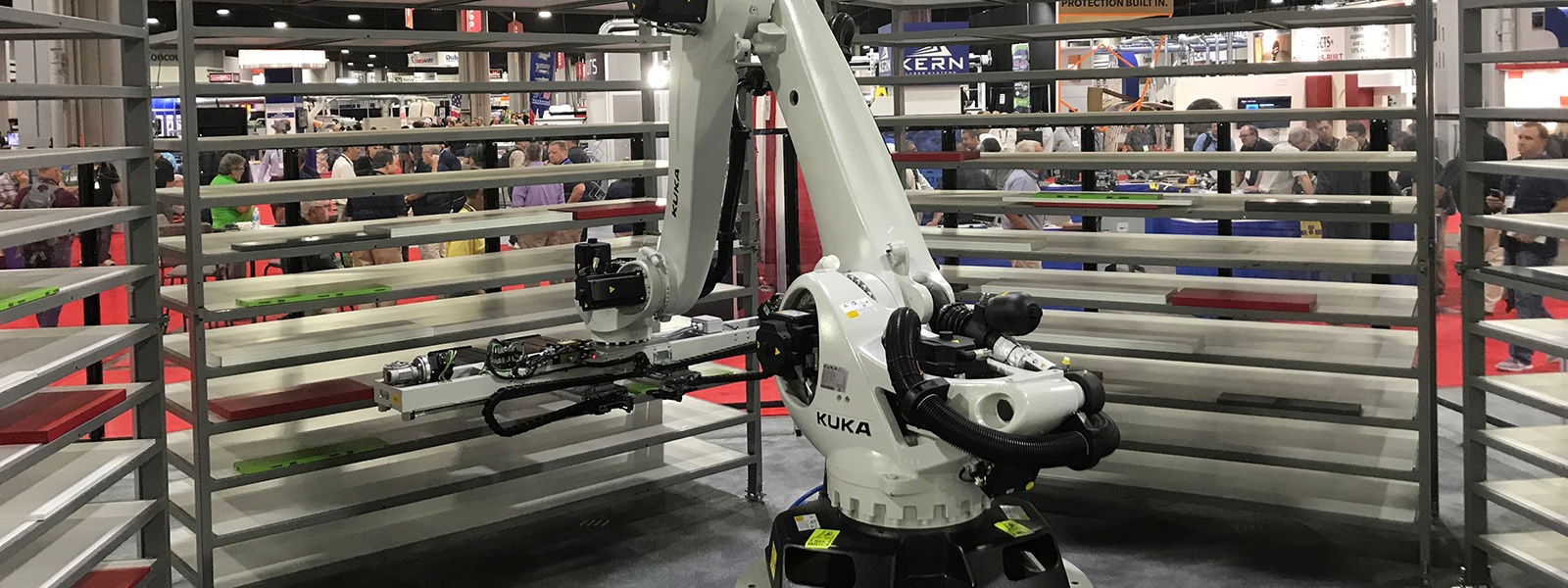 Sure, the new systems are very impressive—especially the ones using both gantries and conveyers—but our challenge is two-fold. One, how to both introduce new parts into the system and get finished parts out. Two, how to handle the large variation in size between our parts. The machines we saw were either really good a working with small or large sized parts, but not both. Our customers parts can be anywhere from 4" x 24" to 4' x 12'.